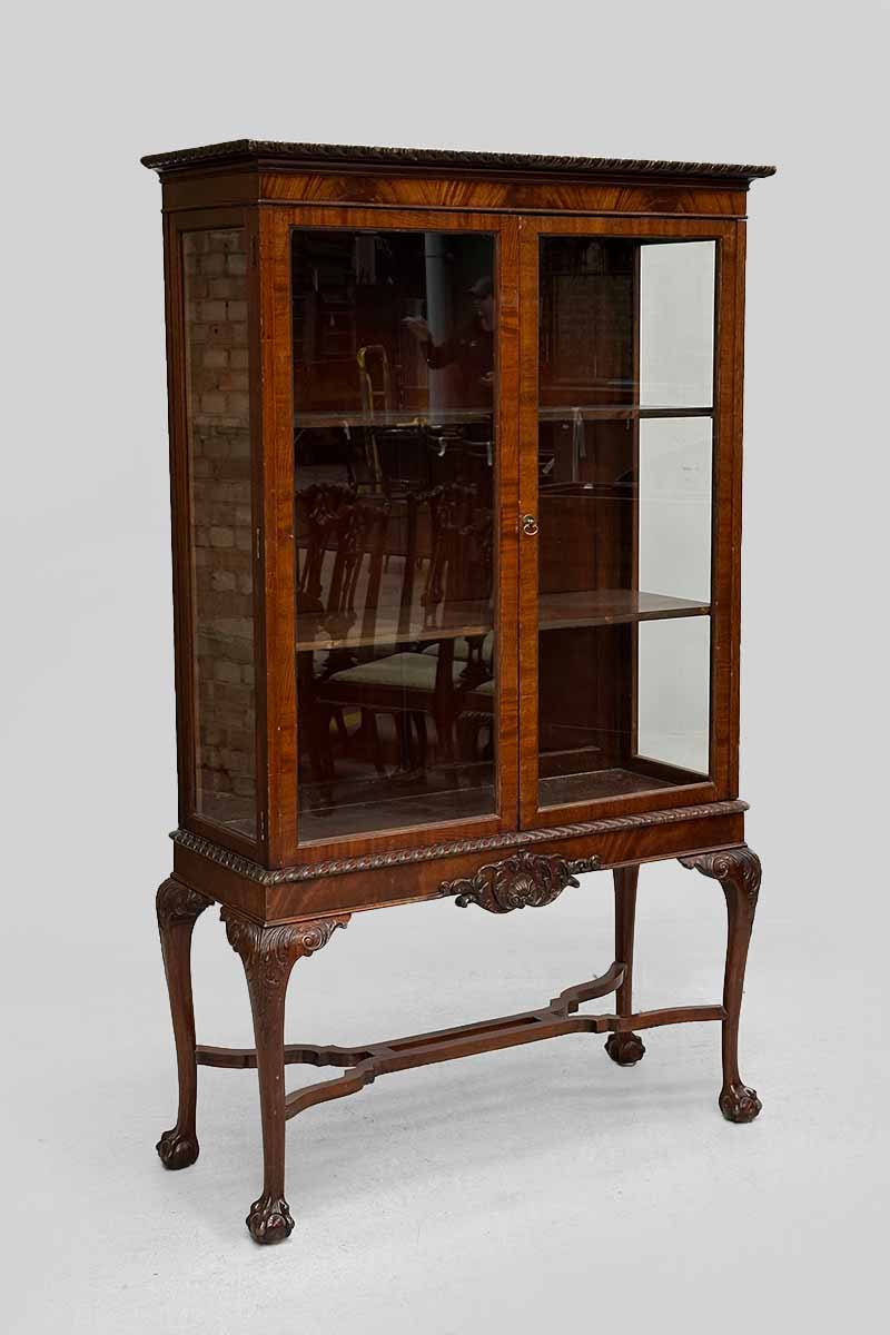 Mahogany Glazed Display Cabinet or Bookcase on Cross Stretcher Base