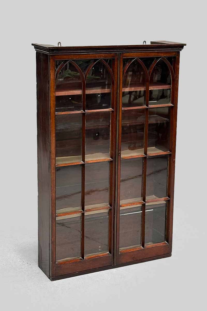 Mahogany Glazed Gothic Style Wall Mounted 2 Door Cupboard or Display Cabinet
