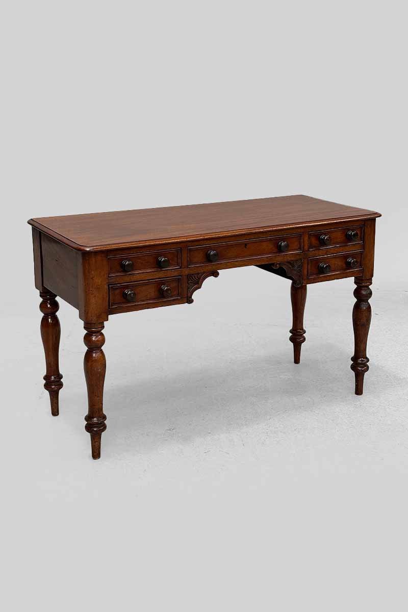 Mahogany Kneehole Writing Table / Desk with 5 Drawers