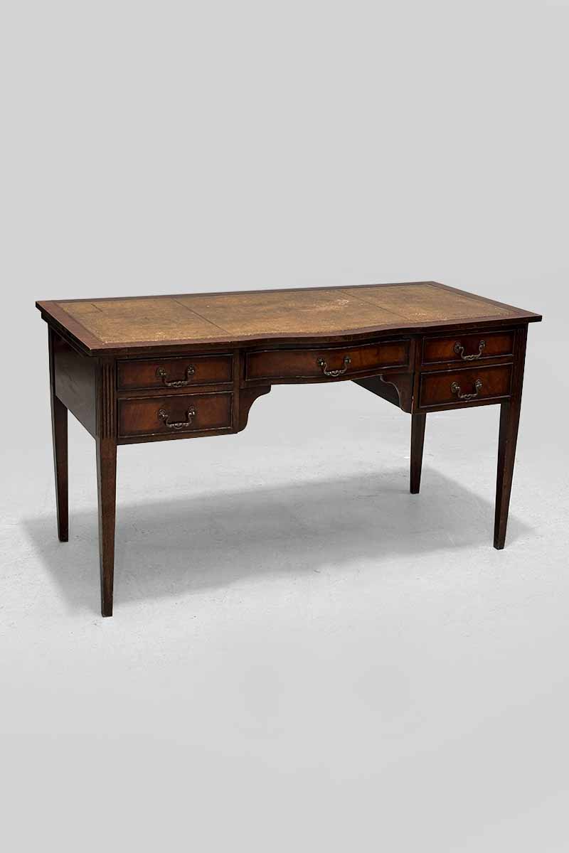 / Mahogany Kneehole Writing Table / Desk wth 5 Drawers & Tan Leather Top (extending flaps either side)