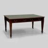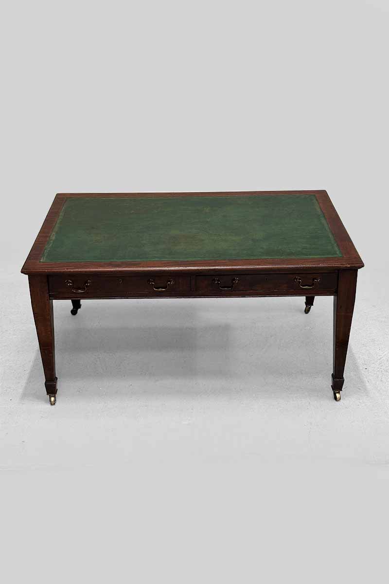 Mahogany Partners Writing Table / Desk with 2 Drawers Either Side & Green Leather Top