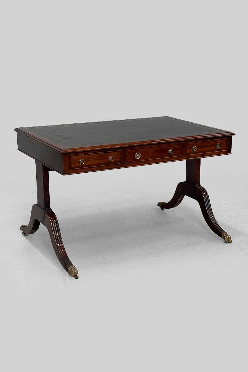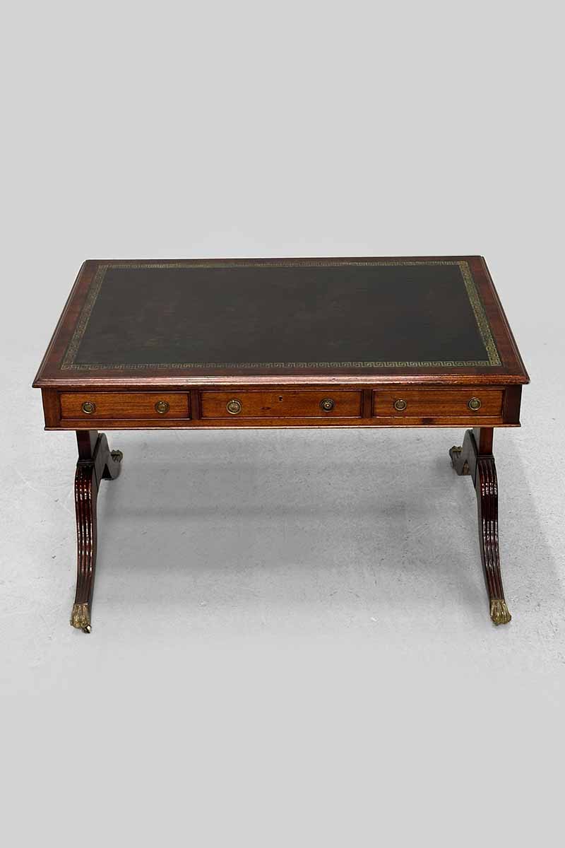Mahogany Partners Writing Table / Desk with 3 Drawers Either Side & Dark Green Leather Top