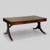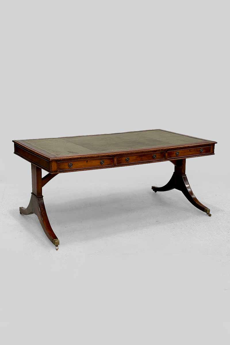Mahogany Partners Writing Table / Desk with 3 Drawers Either Side & Green Leather Top