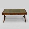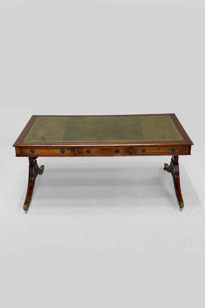 / Mahogany Partners Writing Table / Desk with 3 Drawers Either Side & Green Leather Top