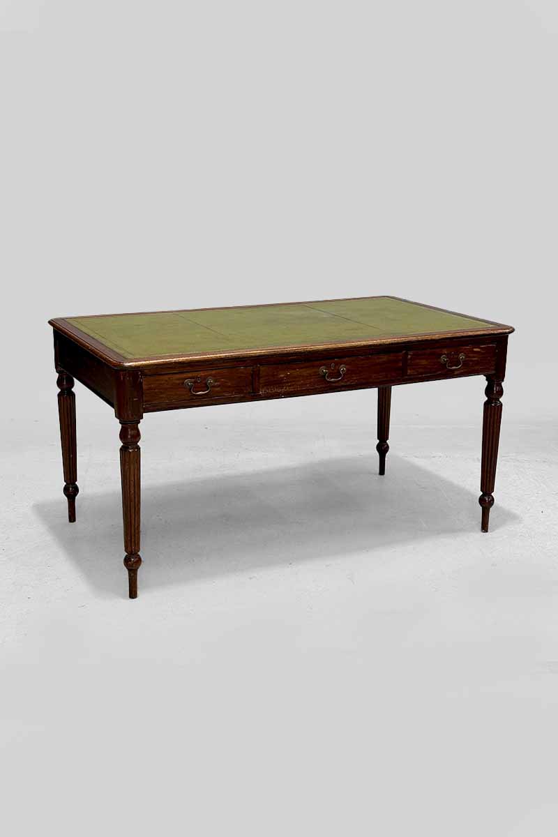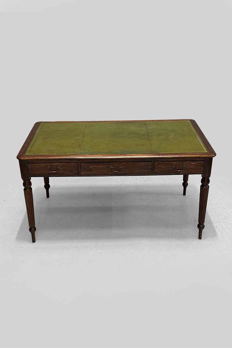 Mahogany Partners Writing Table / Desk with 3 Drawers Either Side & Green Leather Top