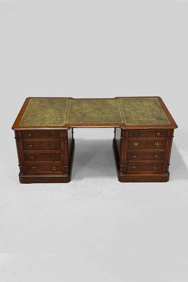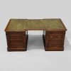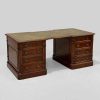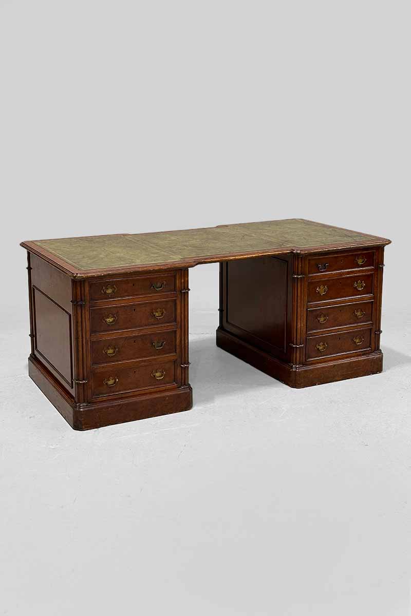 Mahogany Pedestal Desk with 8 Drawers & Green Leather Top