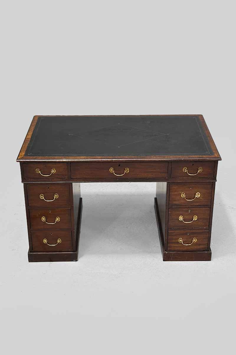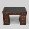 Mahogany Pedestal Desk with 9 Drawers & Black Leather Top