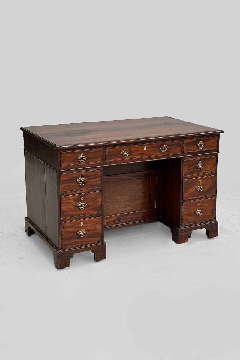 Mahogany Pedestal Desk with 9 Drawers & Built-in Internal Door