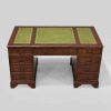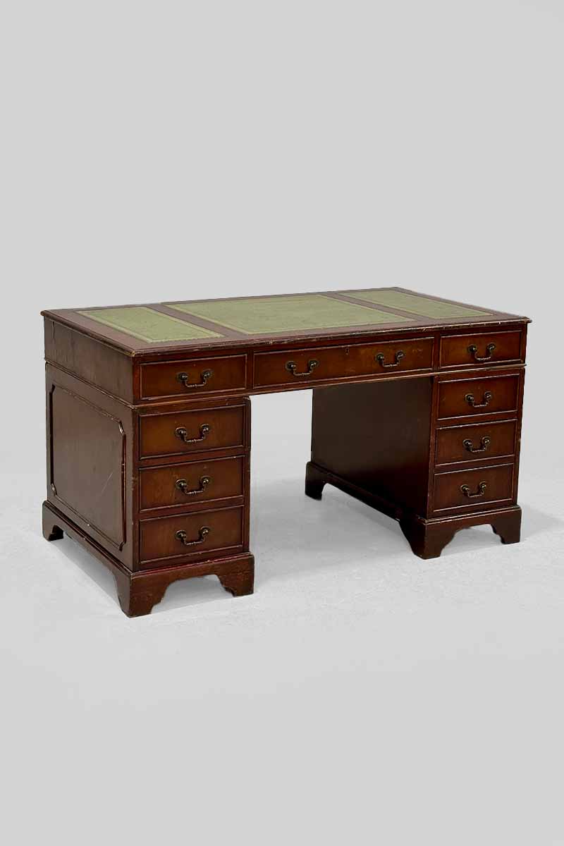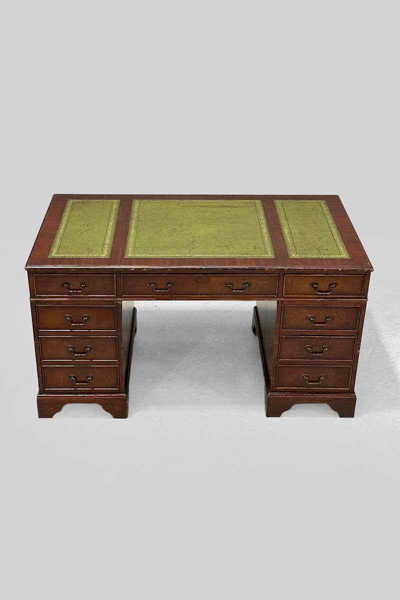 Mahogany Pedestal Desk with 9 Drawers & Green Leather Panelled Top