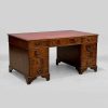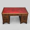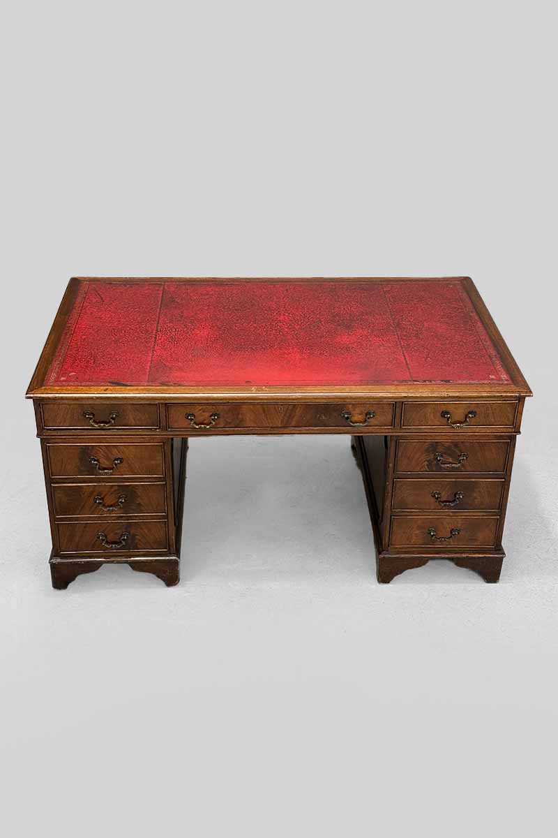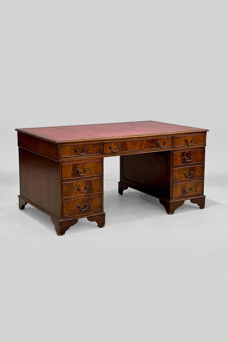 Mahogany Pedestal Desk with 9 Drawers & Red Leather Top