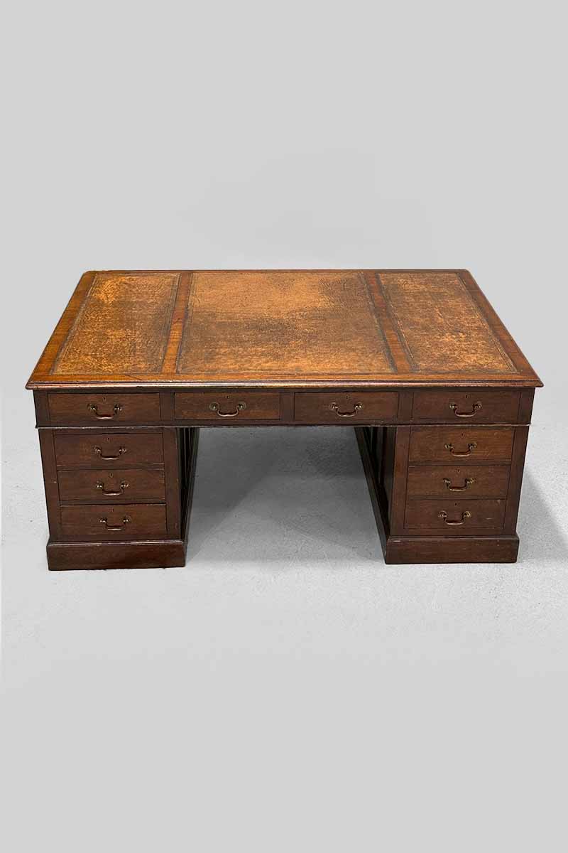 Mahogany Pedestal Partners Multi Drawer Desk with Brown Leather Top