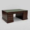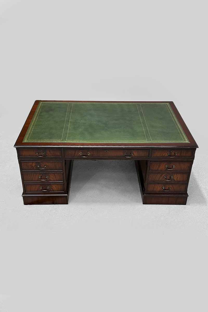 Mahogany Pedestal Partners Multi Drawer Desk with Green Leather Top