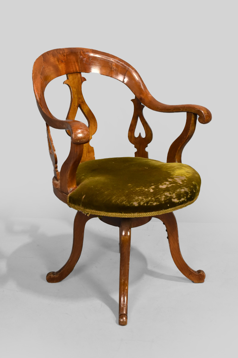 Mahogany Revolving Desk Chair with Heart Cut Back & Green Velvet Seat