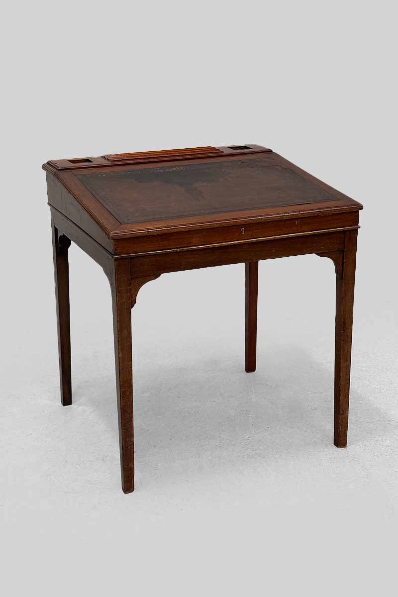 Mahogany Slope Front Writing Table / Desk with Brown Leather Top