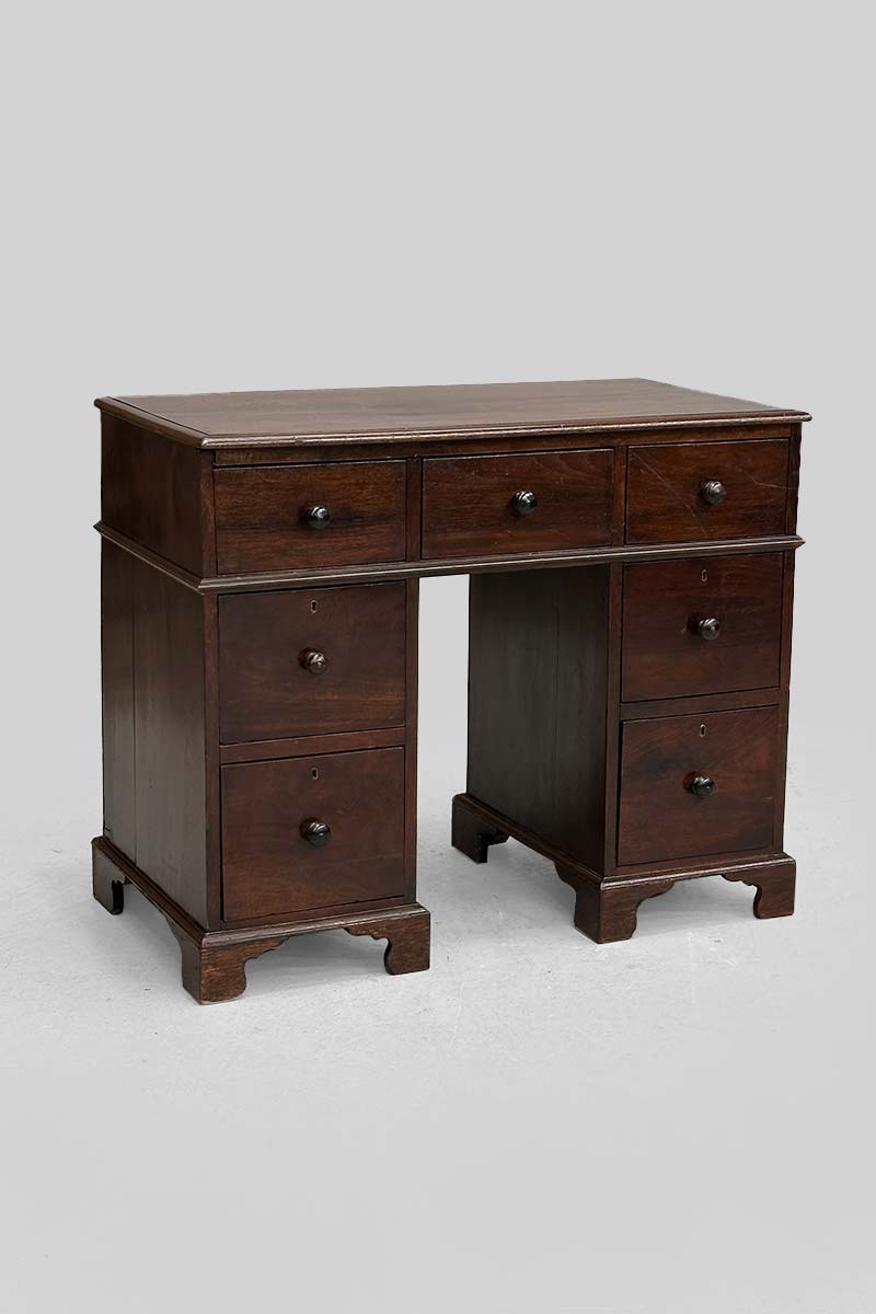 Mahogany Small Pedestal Desk with 7 Drawers