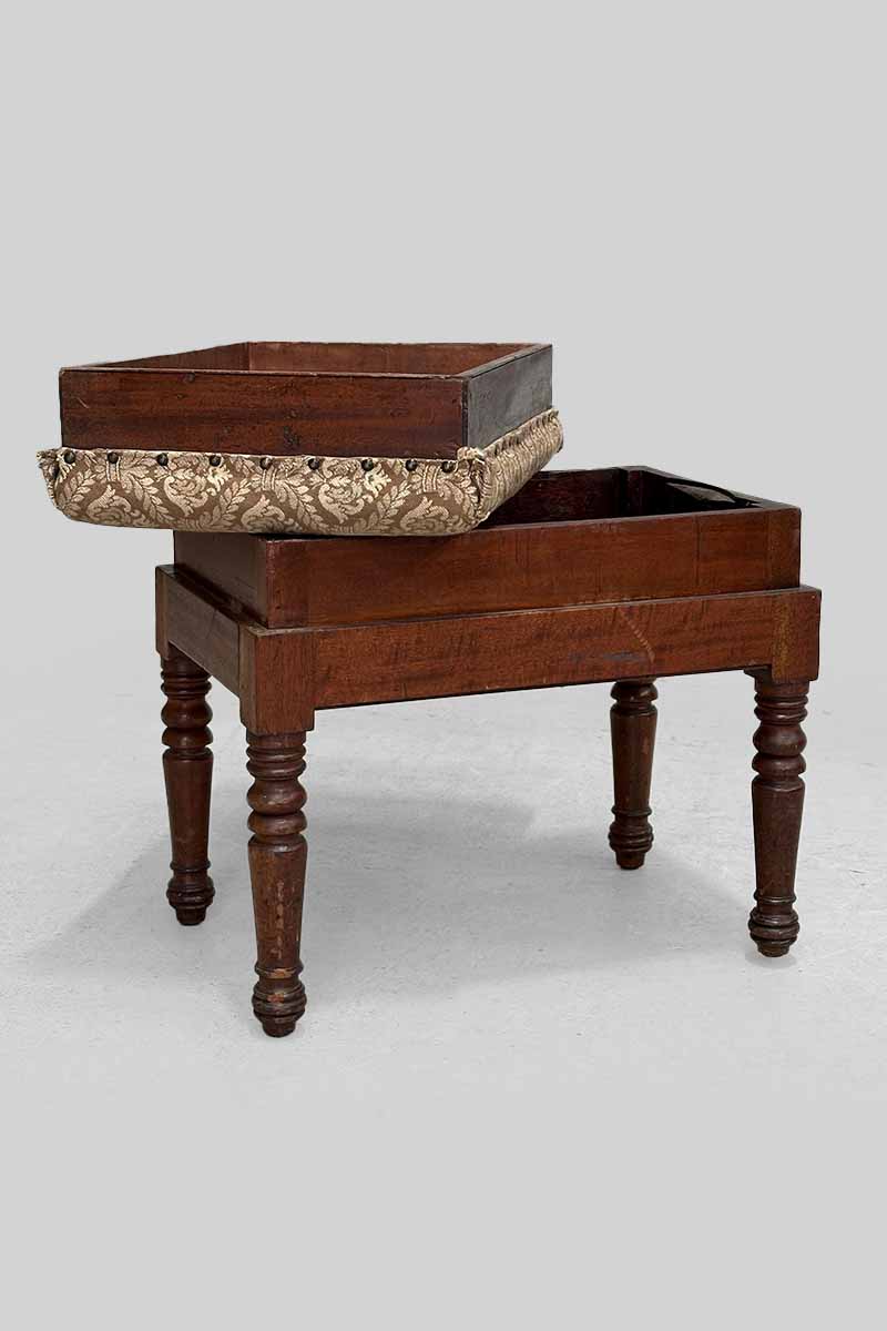 / Mahogany Stool with Detachable Brown & Cream Floral Seat