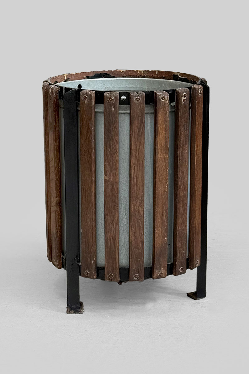 / Metal & Teak Slatted Exterior Waste / Rubbish Bin