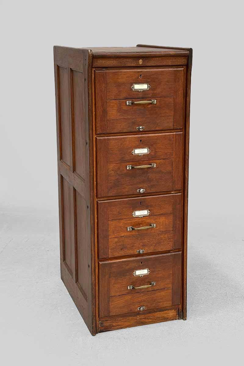 Oak 4 Drawer Filing Cabinet with Brass Handles