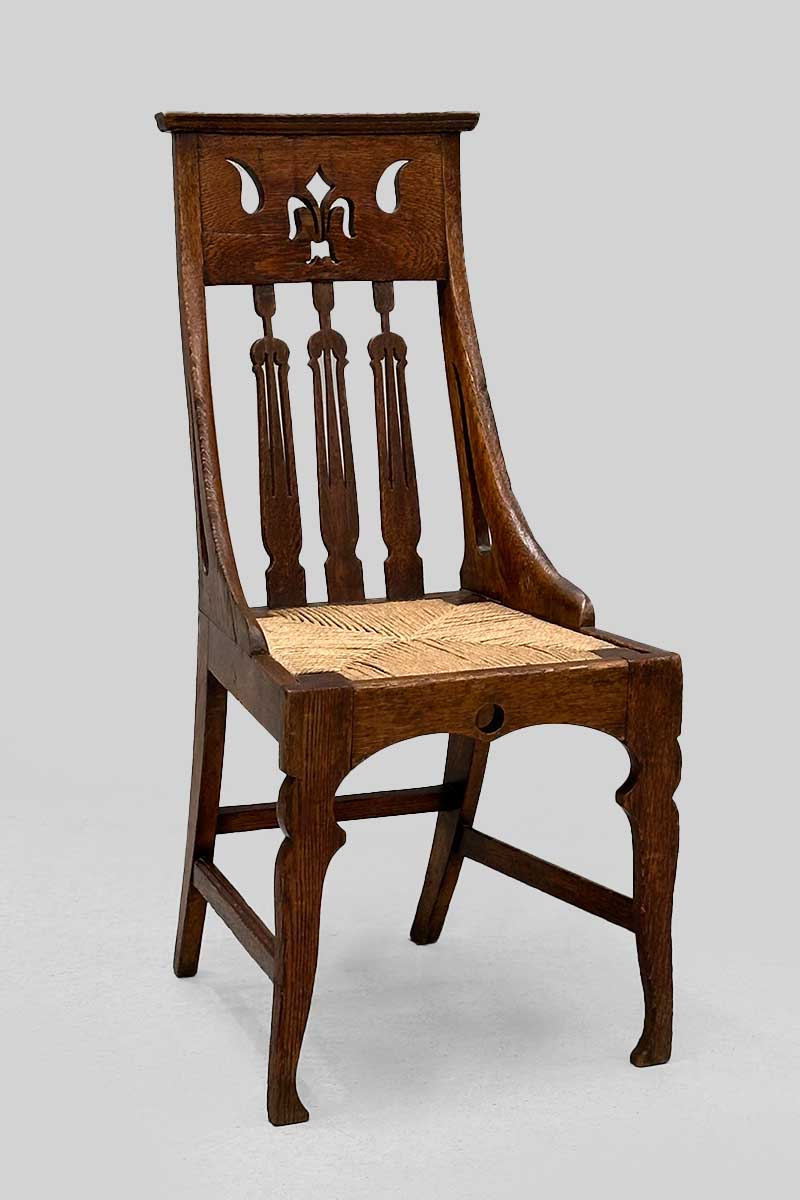 Art Nouveau Oak Carved Dining Chair with Rush Seat