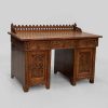 Oak Arts & Crafts Gothic Pedestal Desk with Carved Gallery Top