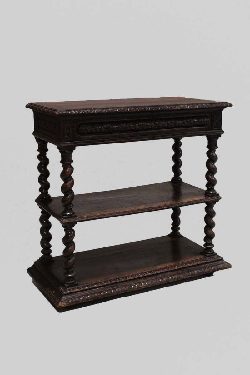 Oak Carved 3 Tier Buffet / Serving Table with Drawer & Barley Twist Legs