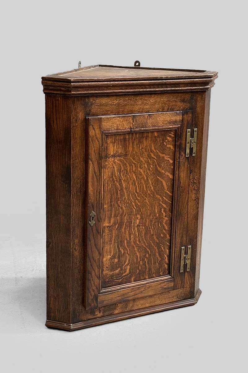 / Oak Hanging Corner Cupboard with Panelled Door