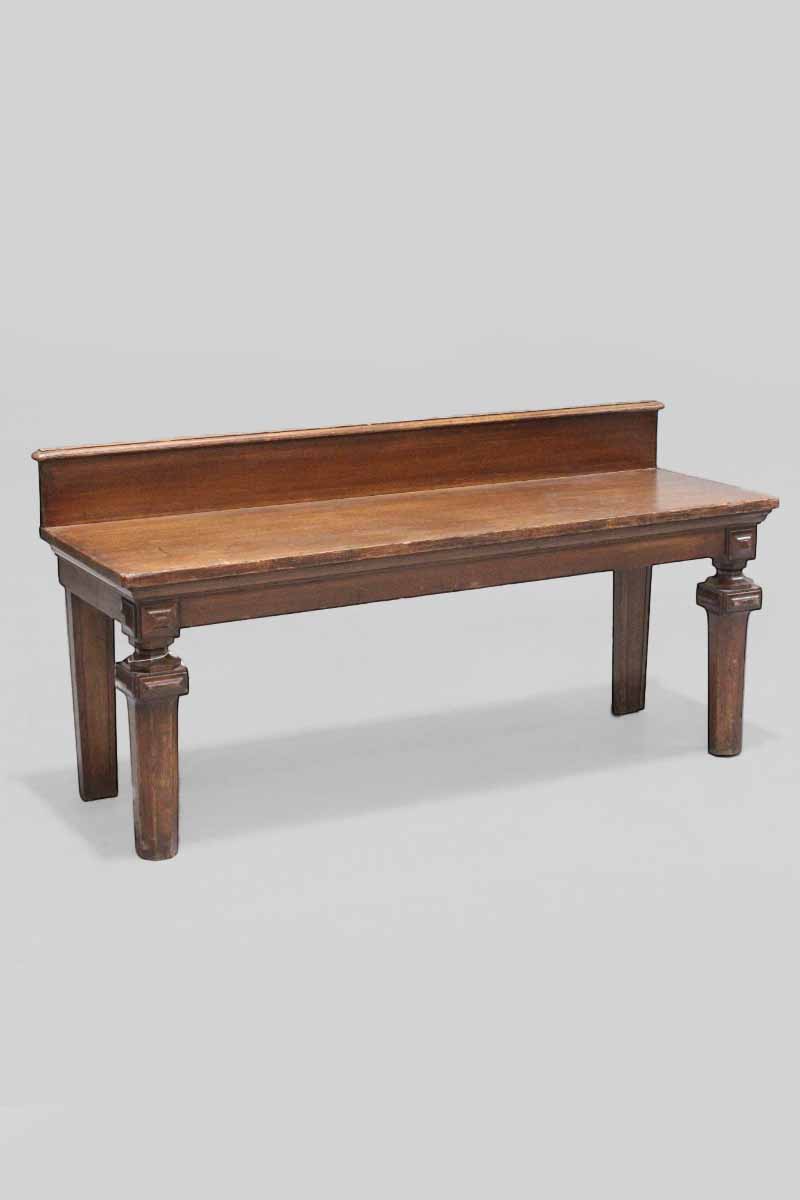 Oak Low Side Table / Stool with Carved Column Legs & Back Rest