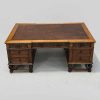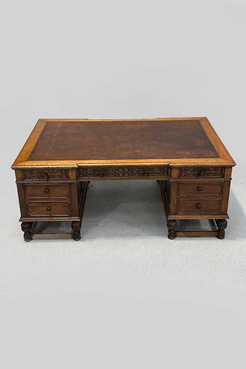 Oak Pedestal Partners Multi Drawer Desk with Brown Leather Top