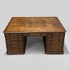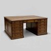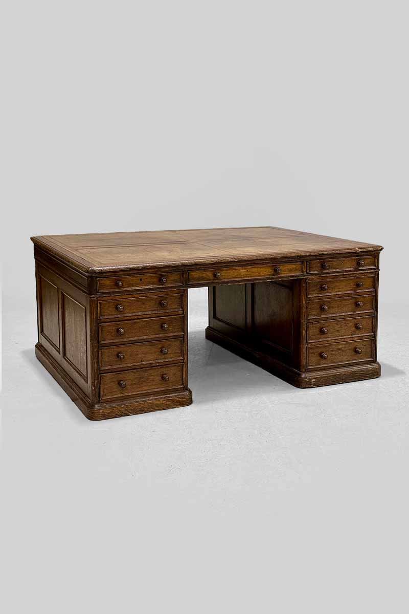 Oak Pedestal Partners Multi Drawer Desk with Brown Leather Top