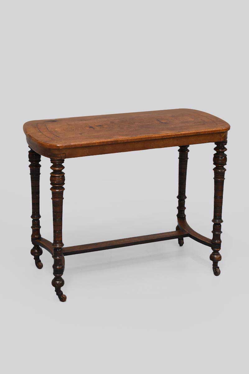/ Oak Side Table with Turned Legs & Central Stretcher