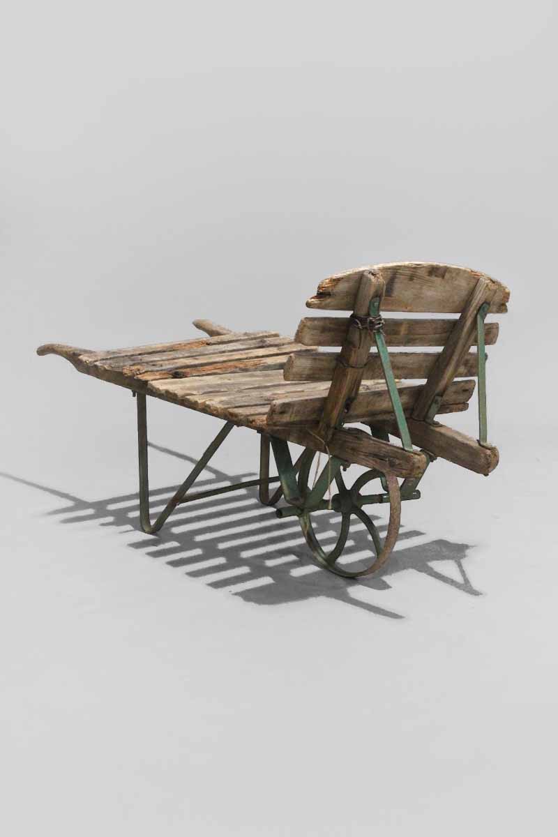 / Oak Slatted Single Wheel Barrow with Green Metal Stays
