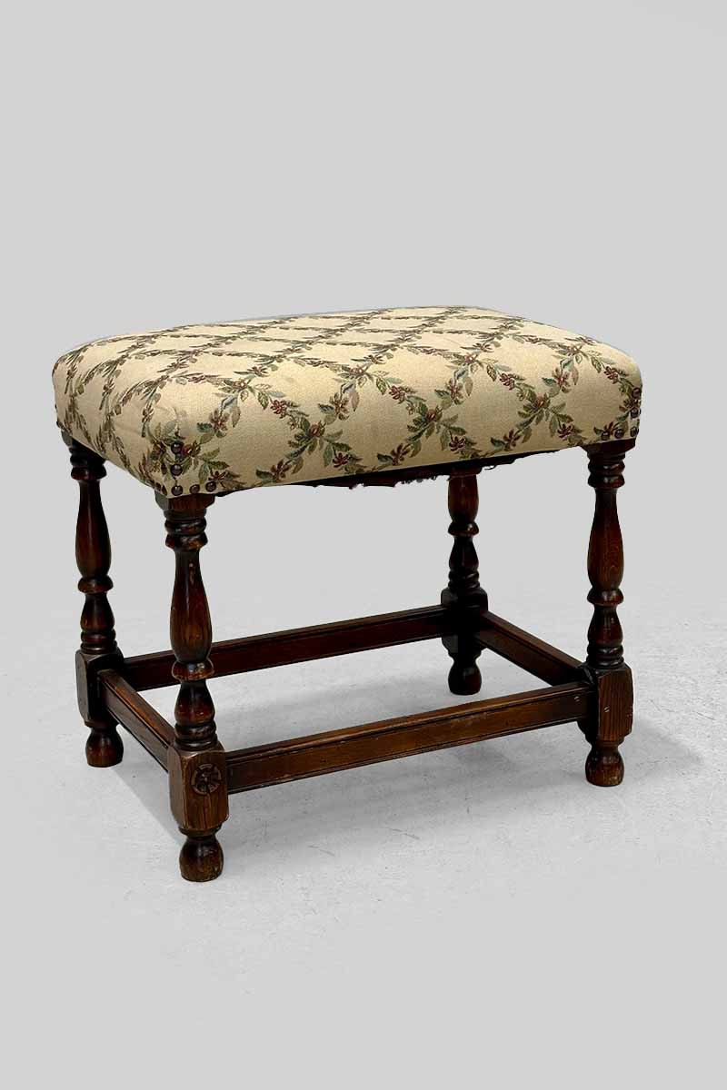 Oak Stool with Cream & Green Criss Cross Floral Seat