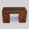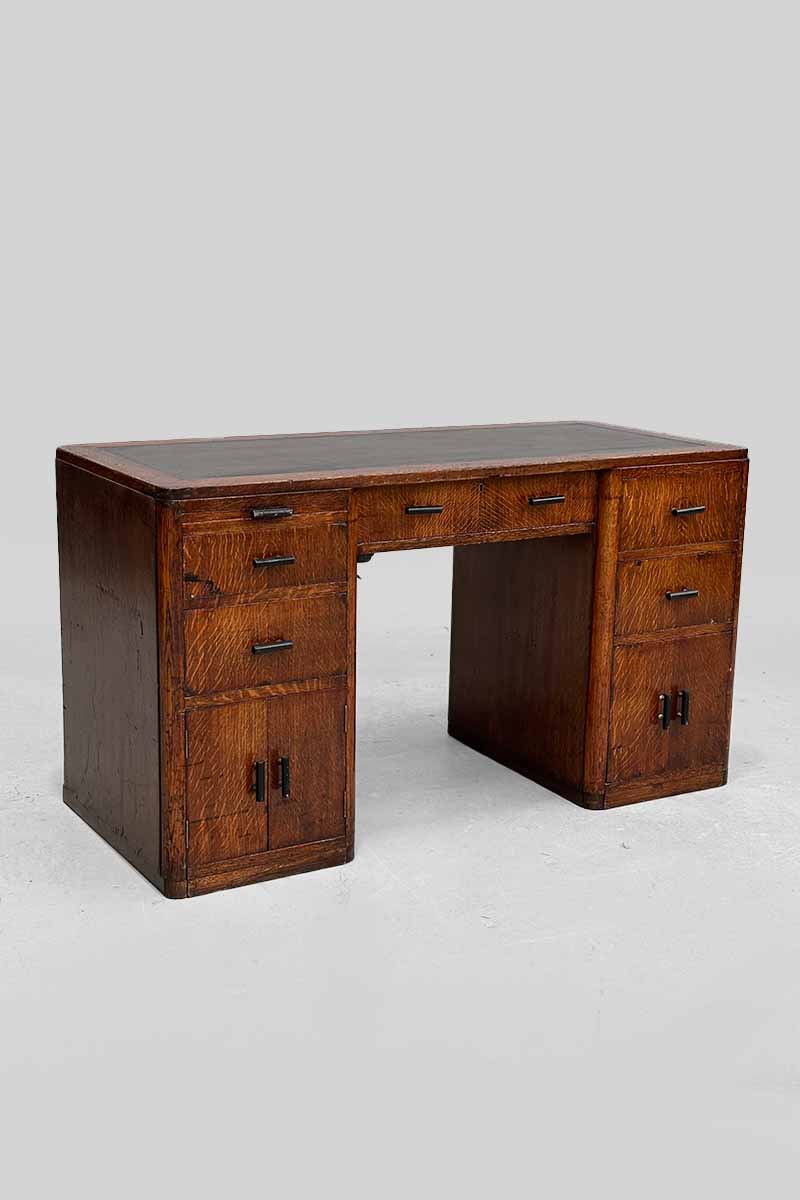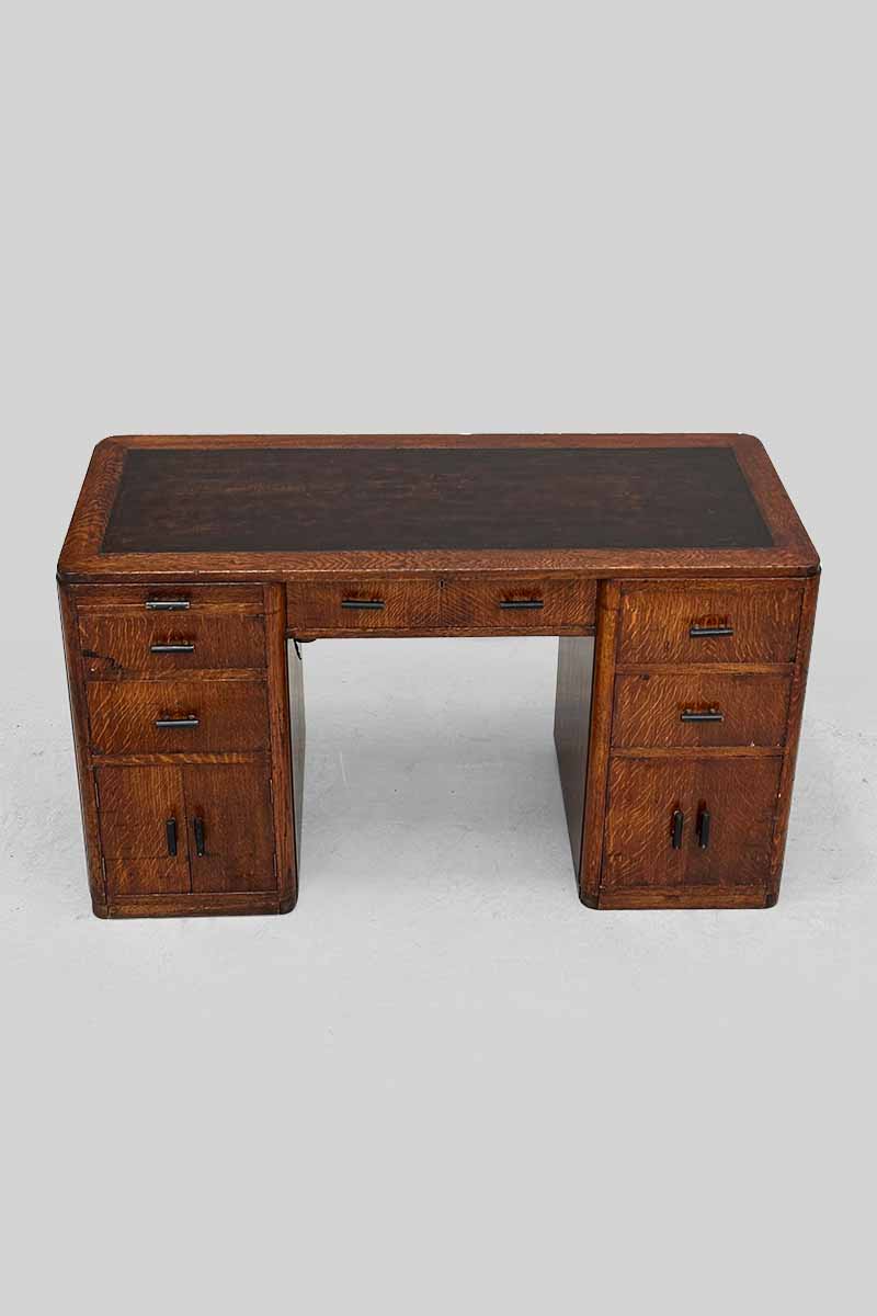 Oak Utility Pedestal Desk with Dark Brown Leatherette Top