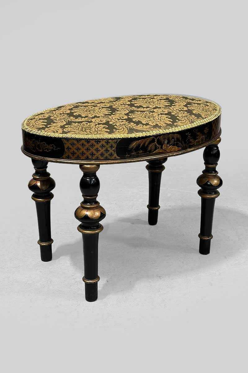 / Oriental & Black Lacquered Stool with Gold Fabric Seat