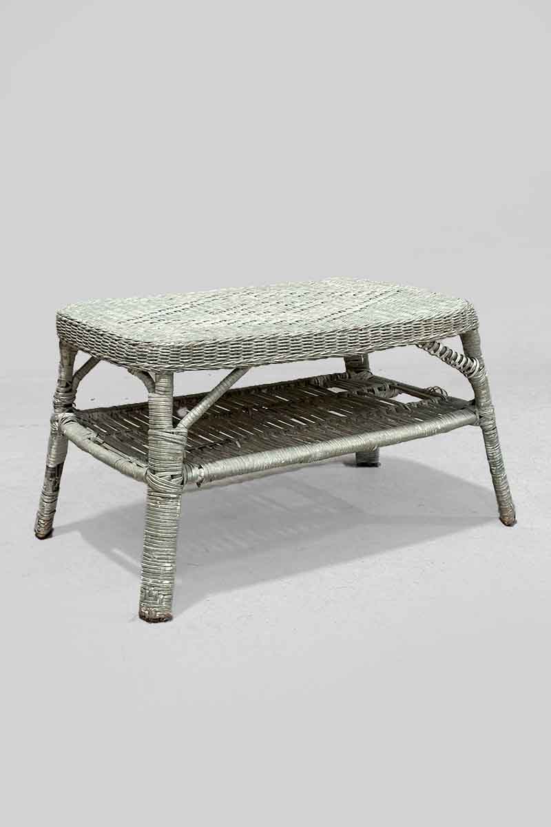 Pale Green Painted Cane Woven Lattice 2 Tier Coffee Table
