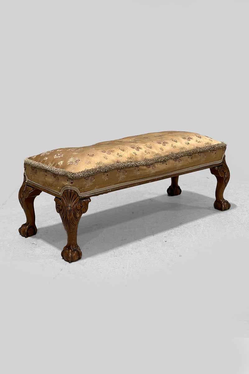 / Peach Floral Silk Stool with Cabriole Legs