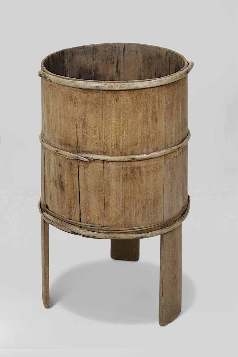 / Primitive Mixing Barrel with Wooden Bands on 3 Tall Legs