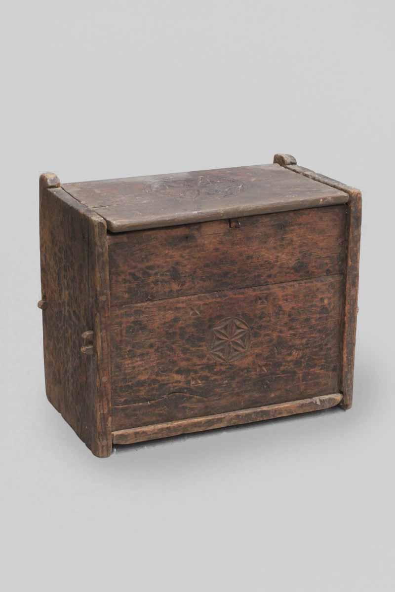 / Primitive Oak Chest with Carved Roundels