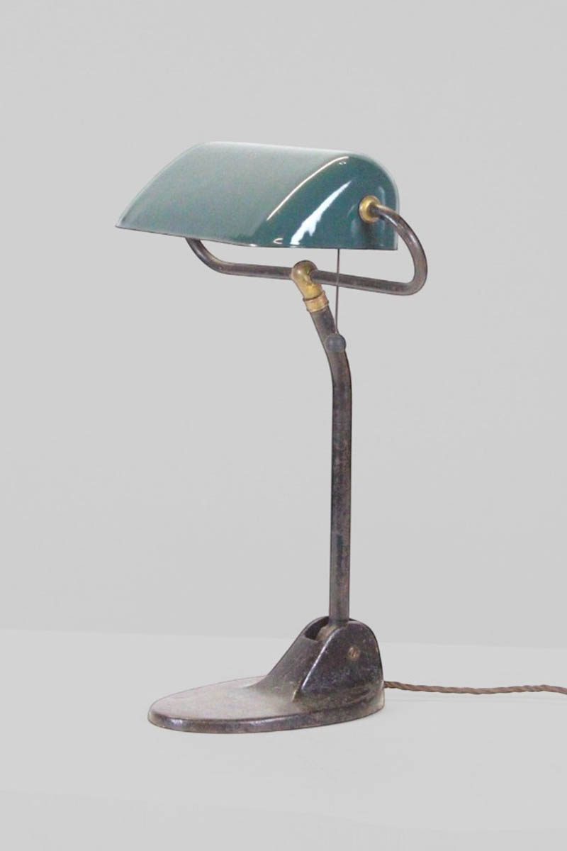 / Desk Top Green / Blue Enamel Trough Lamp with Pull Switch & Oval Base