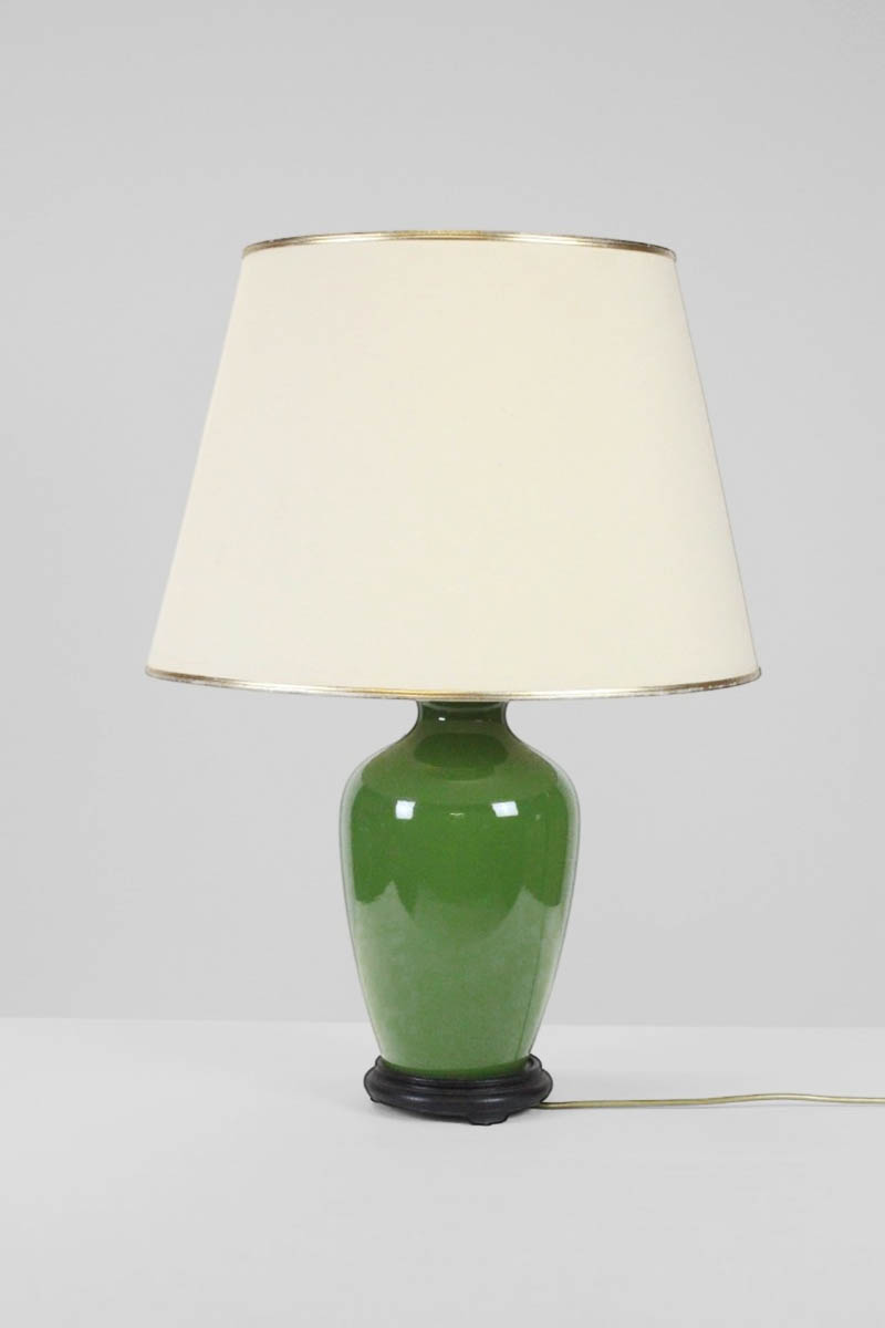 / Green China Vase Table Lamp on Black Wooden Base with 20″ Hard Empire Shade In Sand Cotton