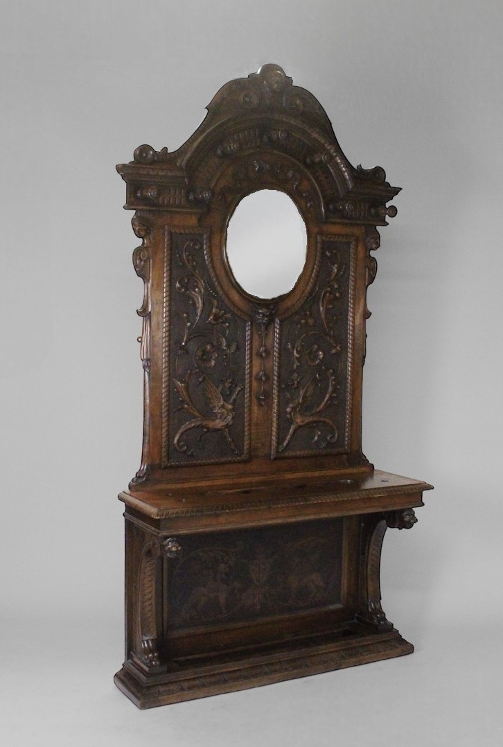Continental Carved Oak Hall Stand with Central Mirror & Shelf