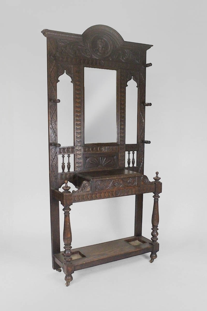 / Carved Oak Hall Stand with Mirror & Drawer
