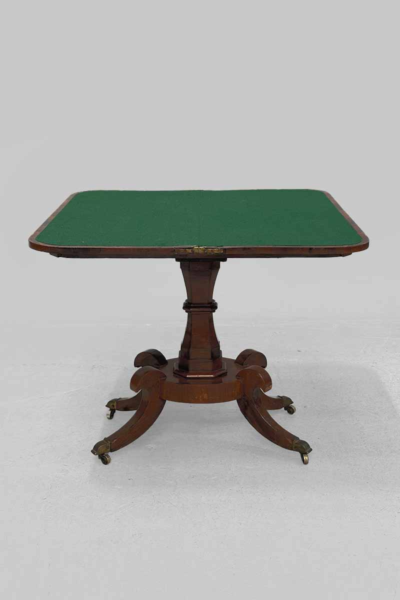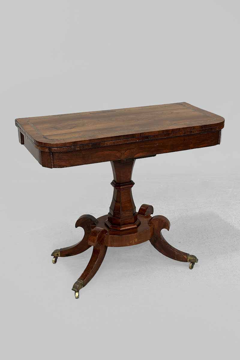 Rosewood Fold Over Card Table with Green Baize Interior