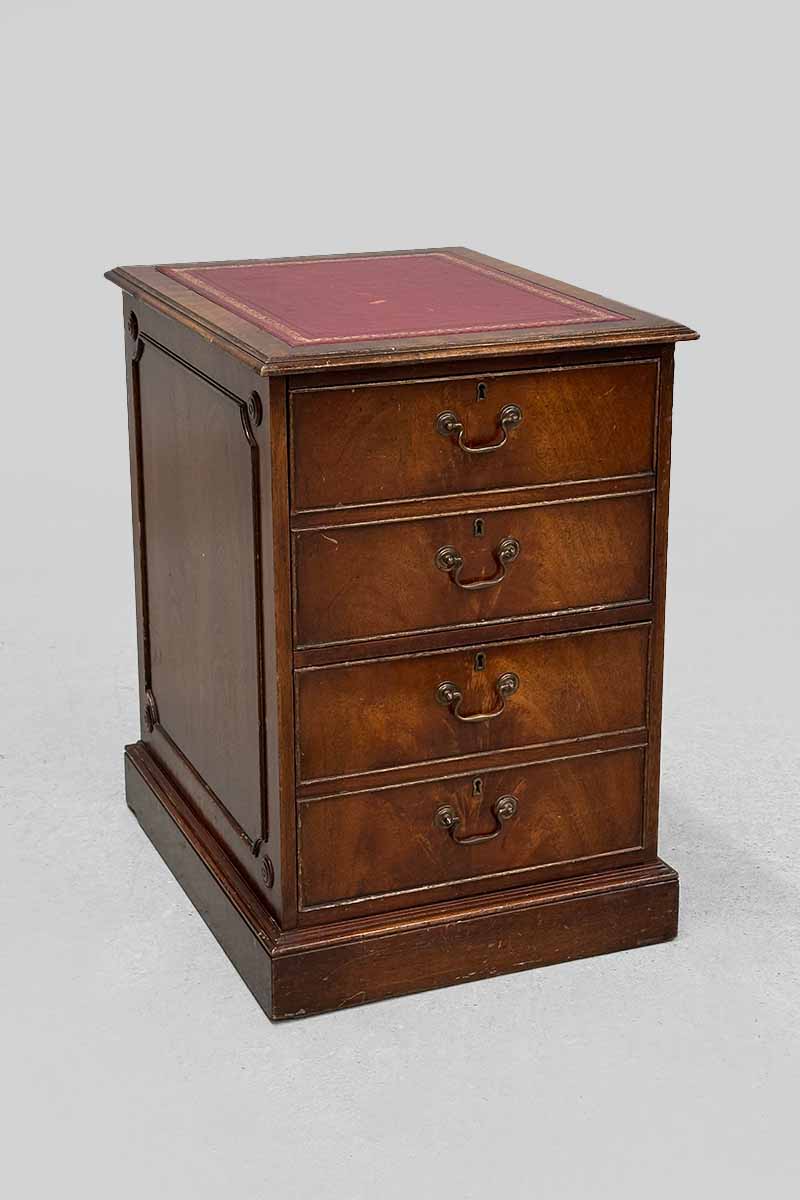 Repro Mahogany 2 Drawer Filing Cabinet with Red Leather Top