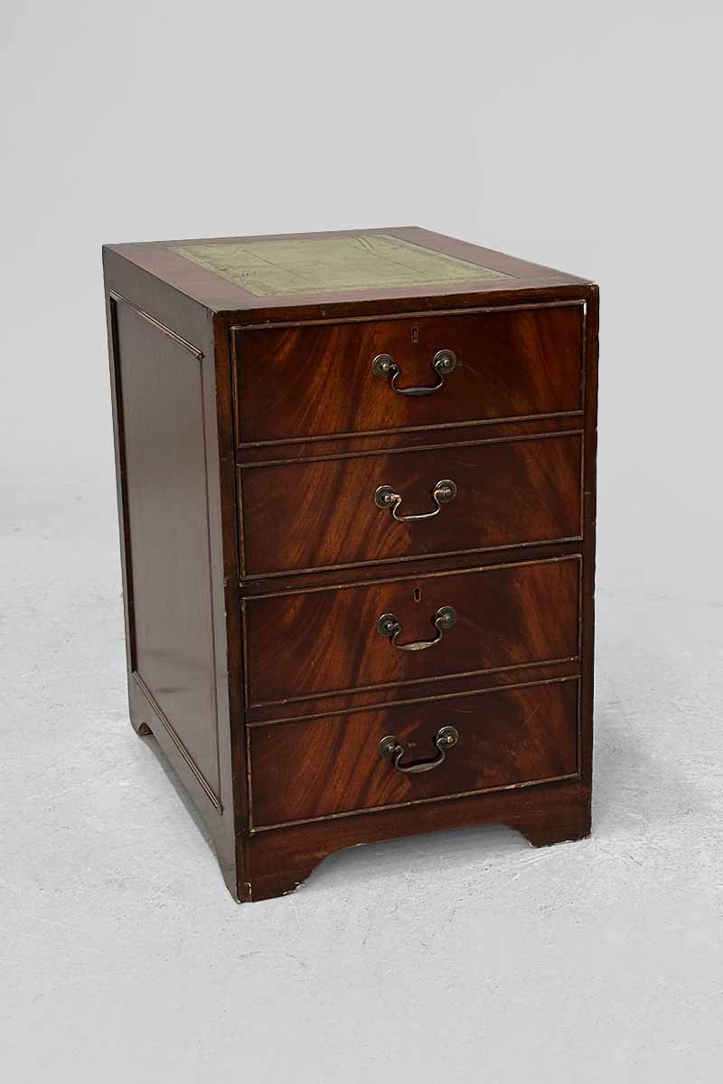 Repro Pedestal Filing Cabinet with Green Leatherette Top