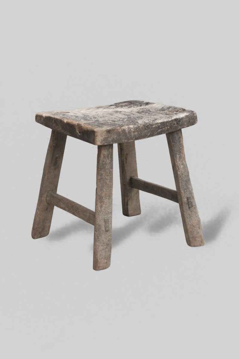/ Rustic Hardwood Stool with Rectangular Top