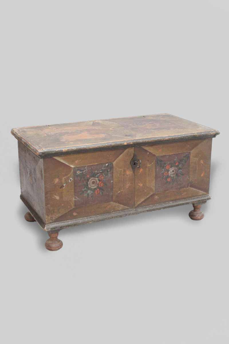 / Rustic Painted Wooden Coffer with Floral Decoration