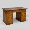 / Satinwood Small Pedestal Desk with 9 Drawers & Worn Red Leather Top