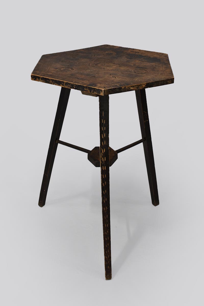Black Painted Carved Hexagonal Table (worn top)
