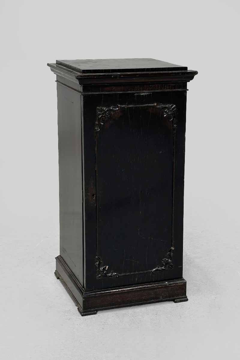 / Small 3 Drawer Ebonized Utility Cupboard with Door Front